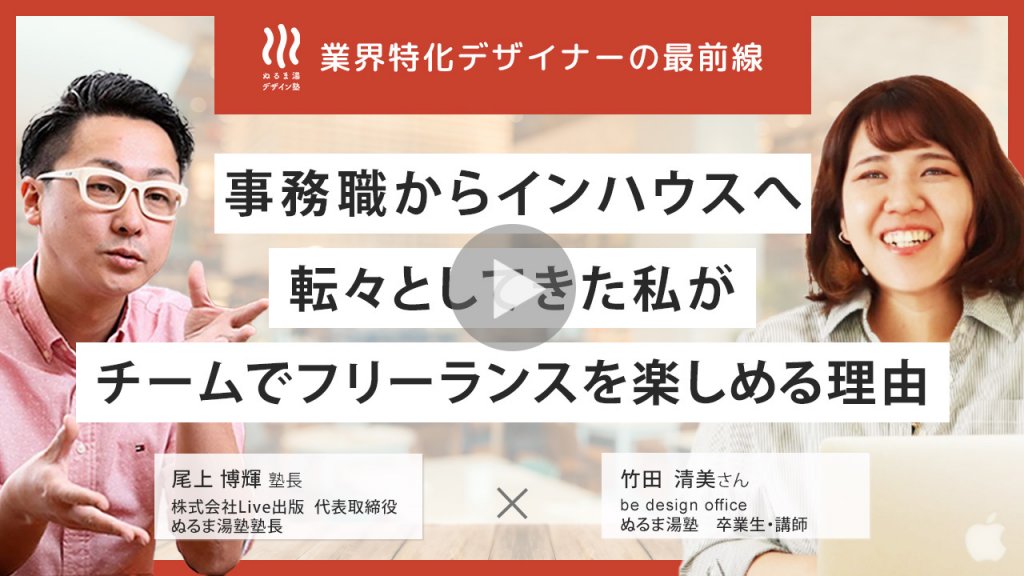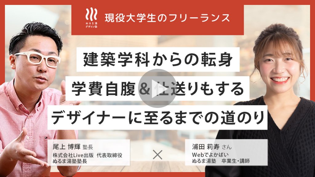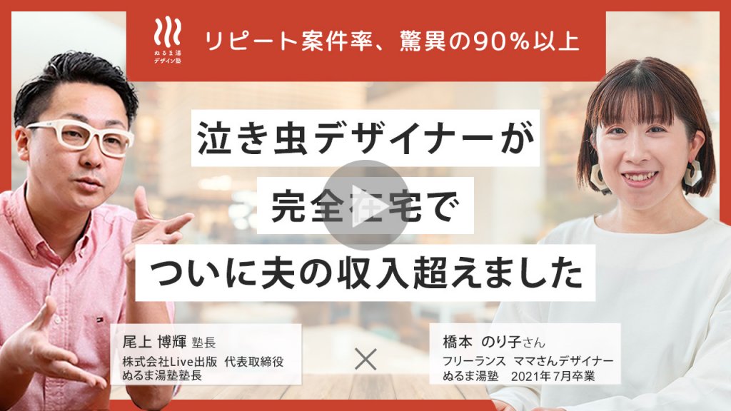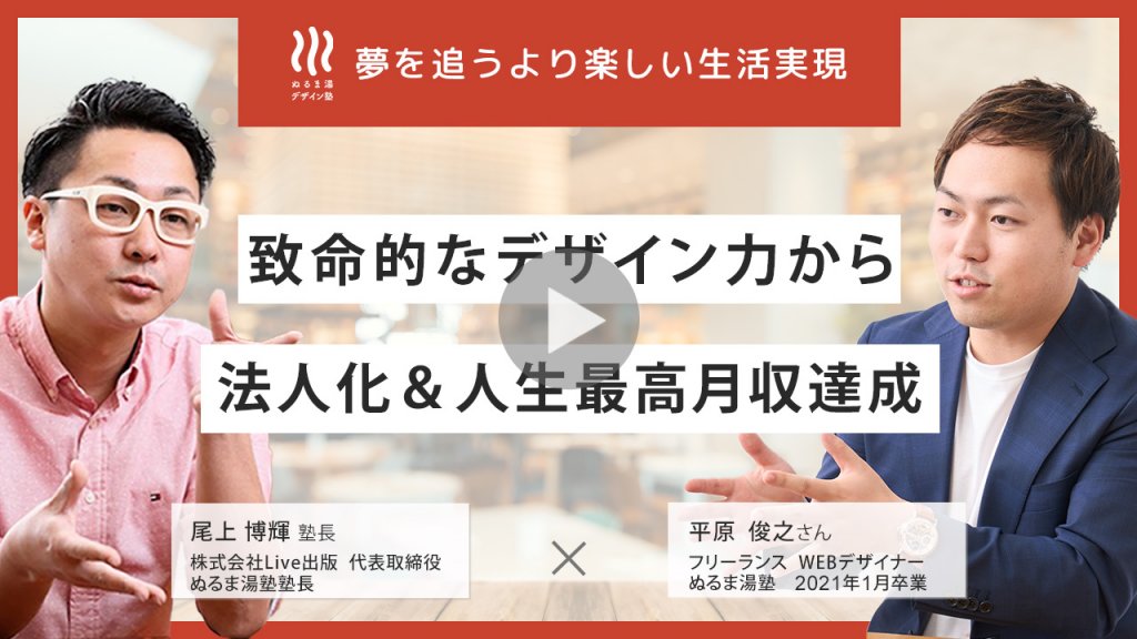 不安を払拭されたポイントは?オンラインセミナーで尾上さんの考え方や、カリキュラムについて聞いたので、その時にちゃんとwebデザイナーとして 働けるようになりそう、と想像できたので セミナー中に(ぬるま湯塾に入ることを)決めてました。 それに尾上さんはとても熱い方で、これから先も一緒にお仕事をしたり相談することを考えると、とても魅力的な方だなと感じました。